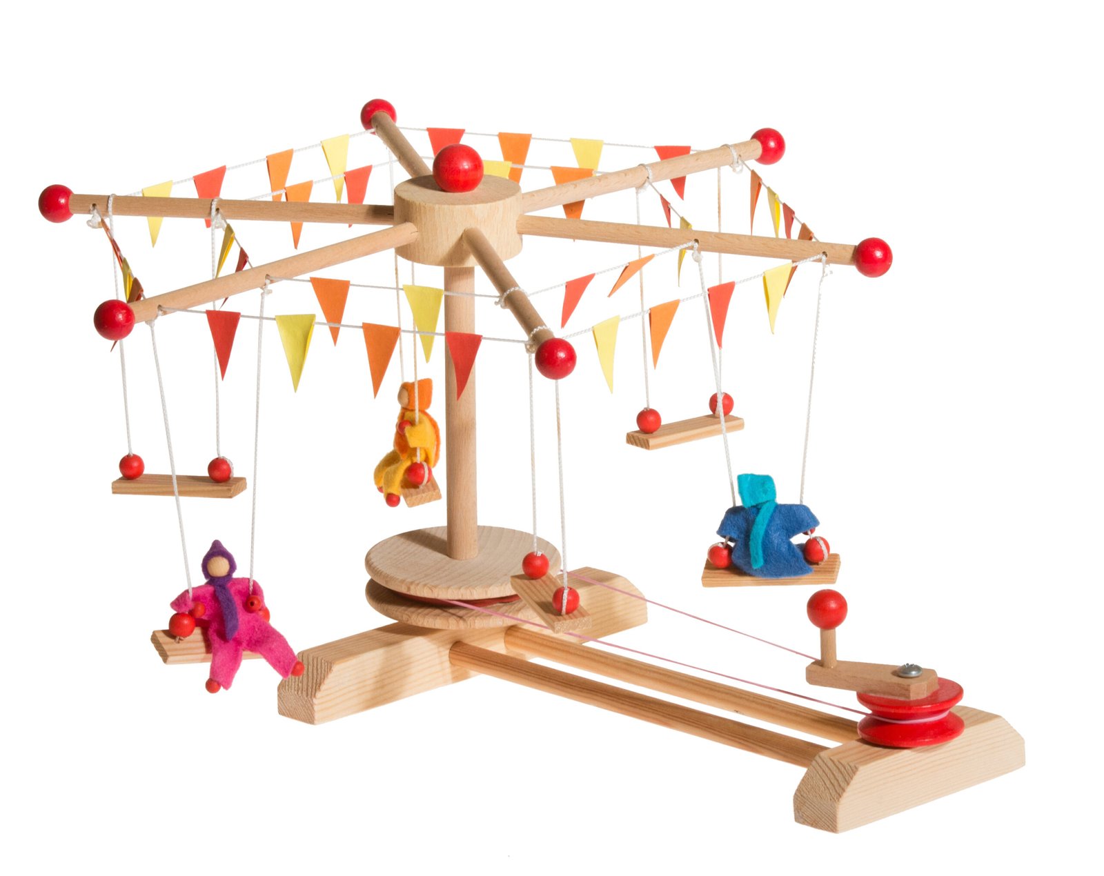 Carusel cu lanțuri și 3 păpuși, joc recomandat copiilor peste 6 ani, asamblarea de la 10 ani.
